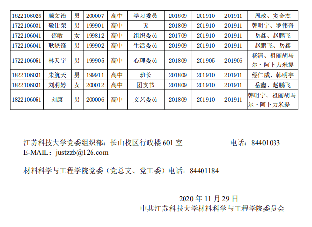 材料學(xué)院2020年下半年接收預(yù)備黨員公示