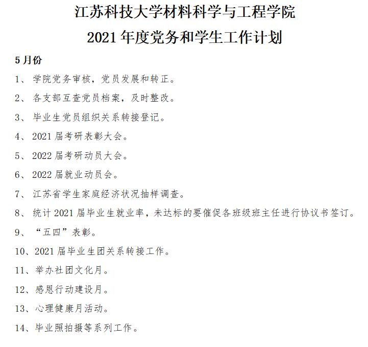 工作計劃|2021年5月份黨建、學(xué)生工作計劃