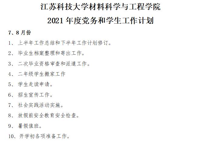 工作計(jì)劃|2021年7、8月份黨建、學(xué)生工作計(jì)劃