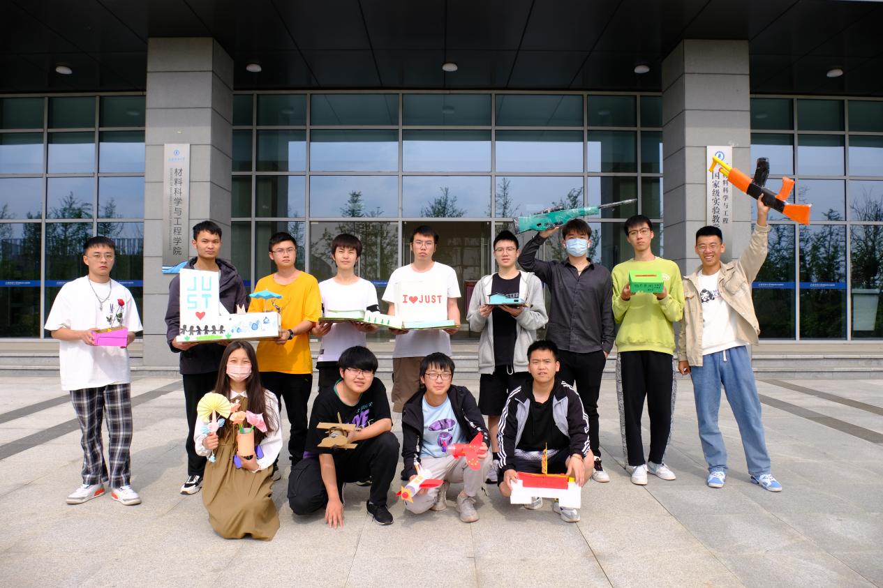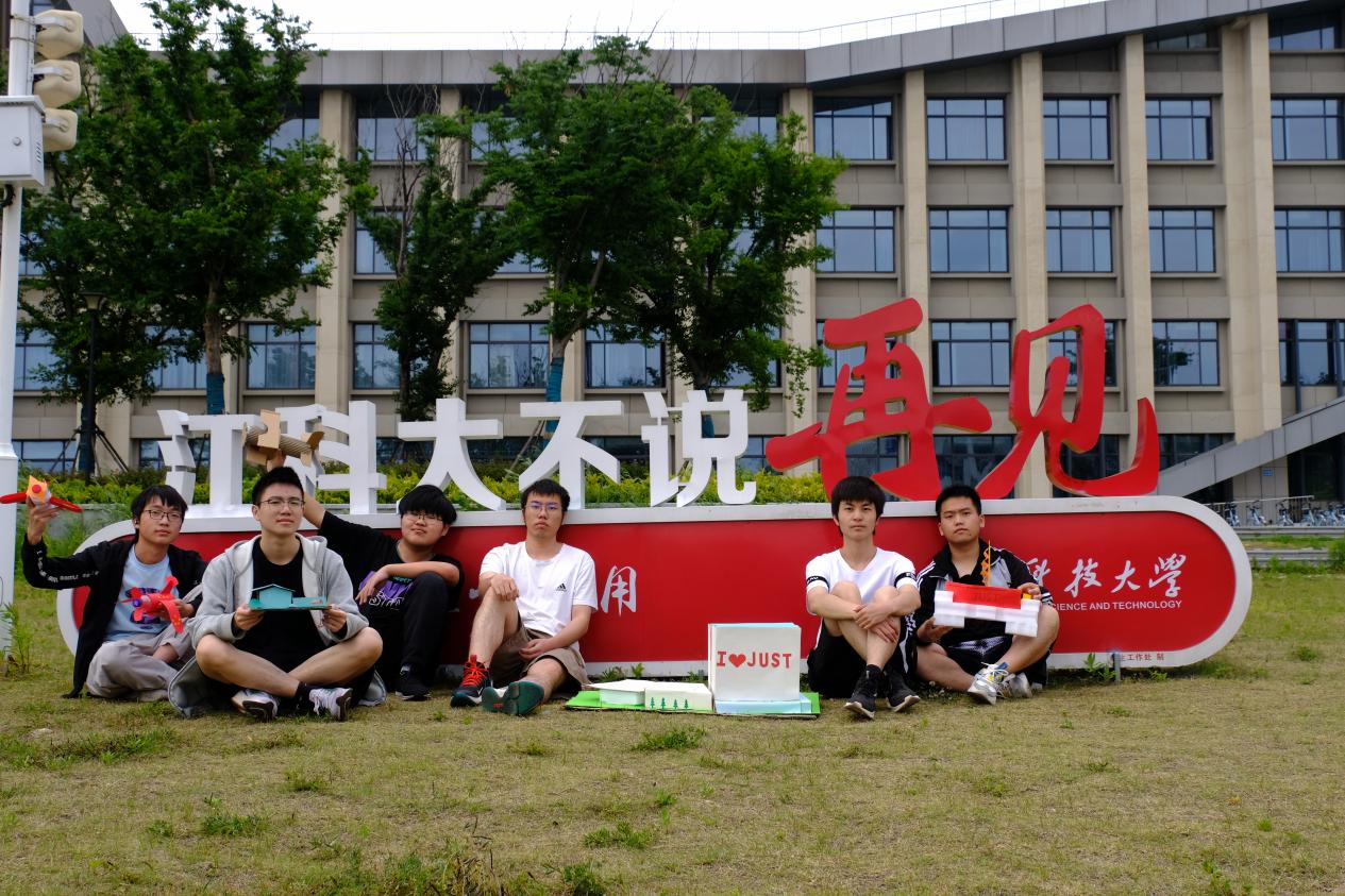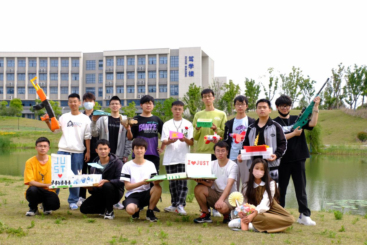 又是一年春好處,正是青春璀璨時(shí)。5月15日,部分團(tuán)隊(duì)逐步完善好作品相約于美麗的江科大校園進(jìn)行定點(diǎn)打卡留念。20級(jí)高分子專業(yè)的杜昊、龔曉良、袁朝義等同學(xué)利用廢舊紙箱,泡沫板打造出一個(gè)迷你版“文理大樓”通過彩繪并貼上“I LOVE JUST”的標(biāo)簽,表達(dá)對(duì)學(xué)校最誠摯的熱愛;潘佳樂和喬湛釗兩位同學(xué)帶著完善后的迷你版圖書館到校圖書館打卡,希望同學(xué)們能在江科大探索真知,展現(xiàn)青春活力,享受大學(xué)生活;吳齊用折紙和泡沫制作出“JUST號(hào)”艦船,他表示“JUST號(hào)”不僅僅是一艘船,更是承載著自己四年的夢(mèng),希望它能帶著自己駛向深藍(lán);而張康、宗劍偉、董舒則帶著各自制作的飛機(jī)暢游在校園進(jìn)行打卡。隨后,全體成員分別在文體中心、圖書館、篤學(xué)樓、材料學(xué)院等地合影留念。