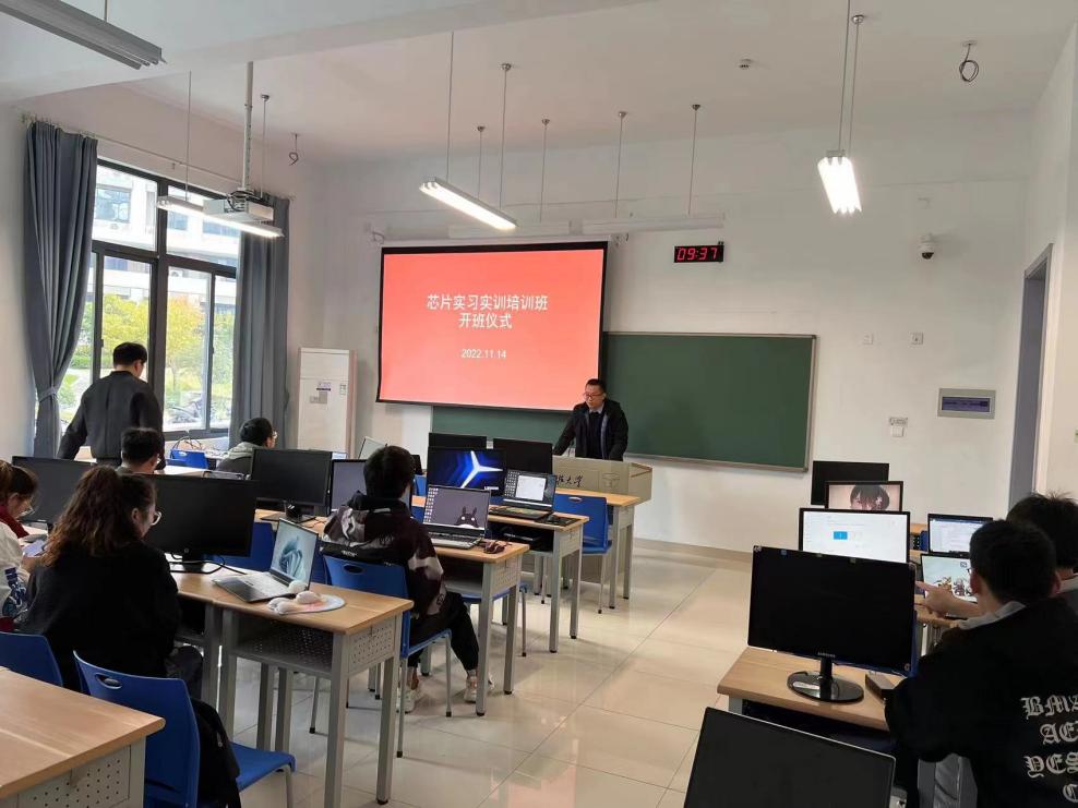 11月14日-11月18日材料科學(xué)與工程學(xué)院聯(lián)合摩爾精英舉行了芯片設(shè)計實(shí)習(xí)實(shí)訓(xùn)培訓(xùn)。14日上午,培訓(xùn)班舉行開班儀式。材料學(xué)院副院長王宇鑫、功能材料系副主任袁妍妍參加開班儀式。