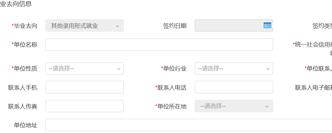 畢業(yè)去向:選擇簽訂就業(yè)協(xié)議形式就業(yè)或者勞動合同形式就業(yè);