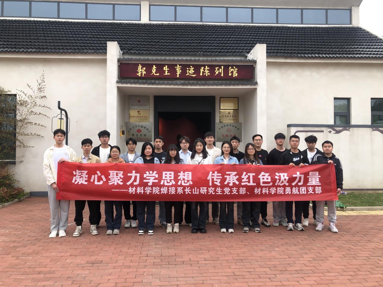 聚焦思想引領(lǐng),筑牢信念基石。為了深入學習貫徹習近平新時代中國特色社會主義思想,激發(fā)廣大黨員的歷史責任感和使命感,深化紅色基因傳承,以黨建帶團建、以團建促黨建,江蘇科技大學材料學院焊接系長山研究生黨支部聯(lián)合勇航團支部于4月11日組織全體成員到郭克生事跡陳列館,開展“凝心聚力學思想,傳承紅色汲力量”聚焦思想引領(lǐng)主題教育活動。
