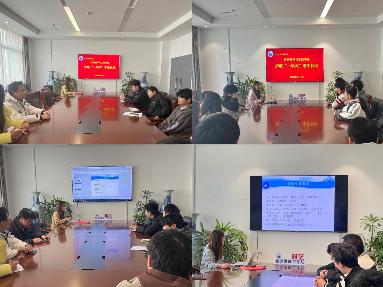 依托“材”藝生涯發(fā)展工作坊,學院精心組織了職業(yè)規(guī)劃、簡歷制作、面試技巧等方面的培訓和指導活動。從證件照的選擇、個人信息的精準呈現(xiàn)、教育背景的描述、任職與實踐經(jīng)歷的提煉,到自我評價的撰寫,輔導員詳細指導學生如何結(jié)合求職崗位要求,利用AI技術(shù)共創(chuàng)出脫穎而出的簡歷。此外,通過結(jié)合實際案例,輔導員還從面試禮儀、面試常見問題、應(yīng)答策略和簽約流程等方面入手,幫助同學們規(guī)避求職過程中的常見誤區(qū),提升整體競爭力。