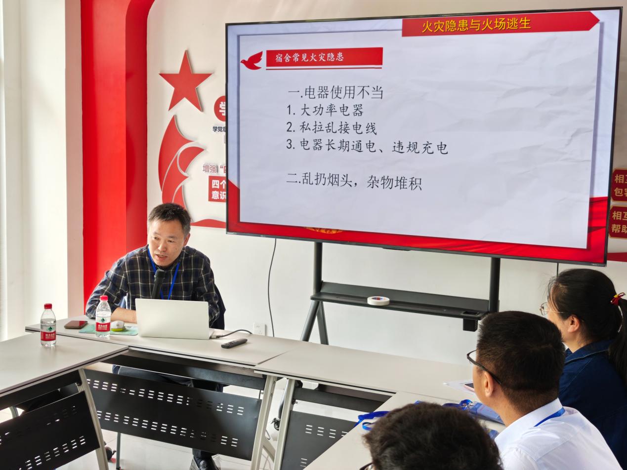 在“護航”一站式學生社區(qū),校應急管理科劉律科長為輔導員、學生干部、公寓管理人員開展宿舍消防安全培訓。通過理論講解、案例剖析等方式,重點講解了起火原因,預防措施以及逃生技能。