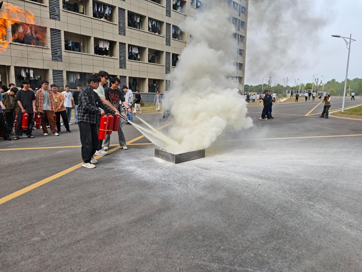 在消防器材實操環(huán)節(jié),安保處工作人員現(xiàn)場演示了干粉滅火器的“提、拔、握、壓”四步操作法,并指導師生代表進行滅火實操。參演師生分組練習,通過實戰(zhàn)化訓練掌握了滅火器材的正確使用方法。