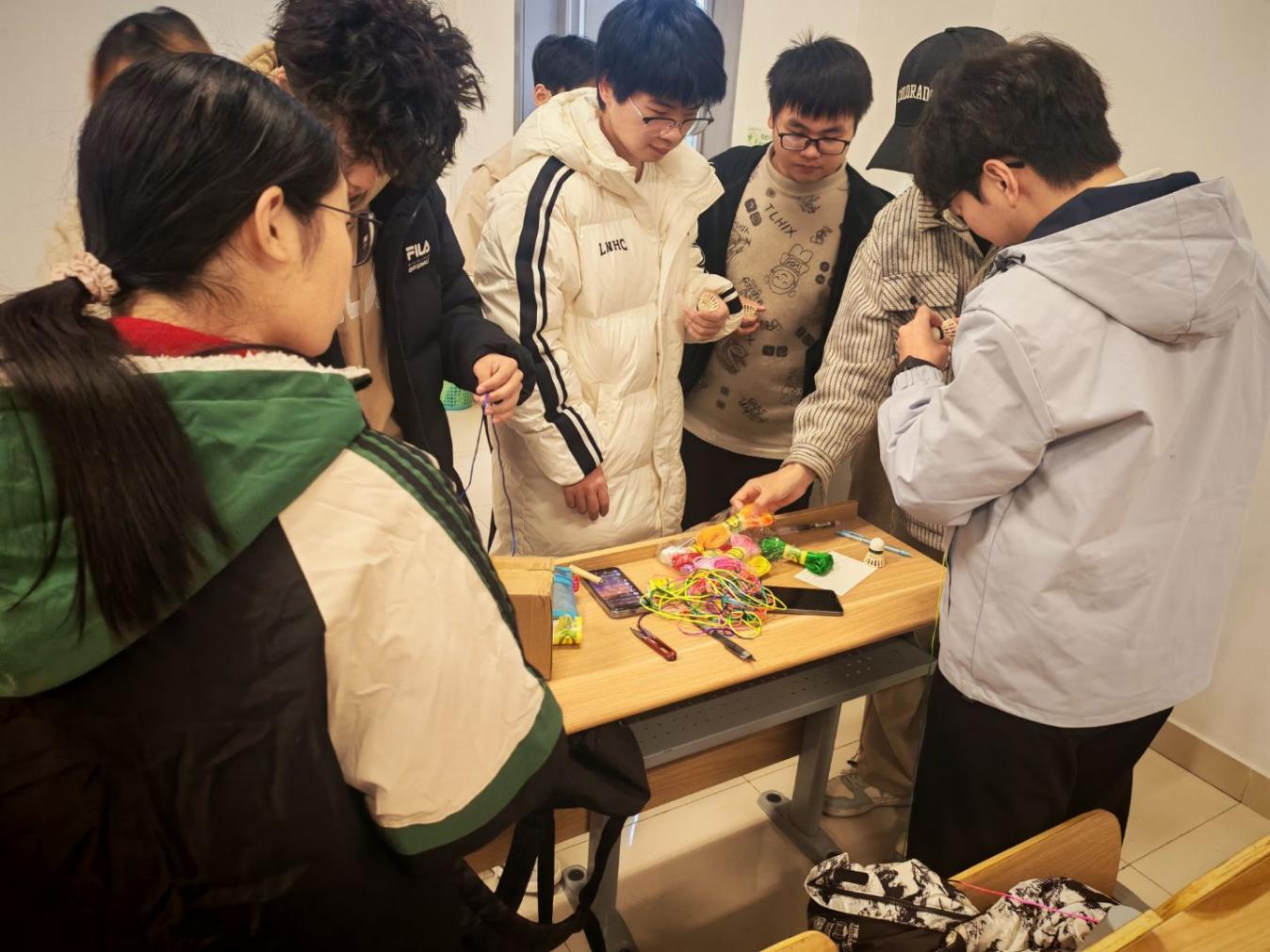 現(xiàn)場設(shè)明信片書寫區(qū)與手工制作區(qū)。義工站的志愿者們細心準備紙筆,引導同學們寫下句句鼓勵;羽毛球協(xié)會成員則發(fā)揮特長,帶來回收羽毛球上的羽毛,現(xiàn)場教大家制作獨具紀念意義的羽毛球掛件,在環(huán)保實踐中傳遞創(chuàng)意與心意。