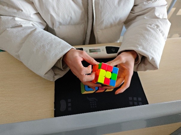 比賽過程中,工作人員嚴(yán)格按照規(guī)范完成打亂操作,選手在裁判監(jiān)督下依次參賽。隨著指尖飛速轉(zhuǎn)動,色塊不斷變換,計(jì)時(shí)器數(shù)字迅速跳動,充分展現(xiàn)了新生們對魔方運(yùn)動的熱情與專注。裁判組認(rèn)真記錄成績,確保賽事公平、有序進(jìn)行。